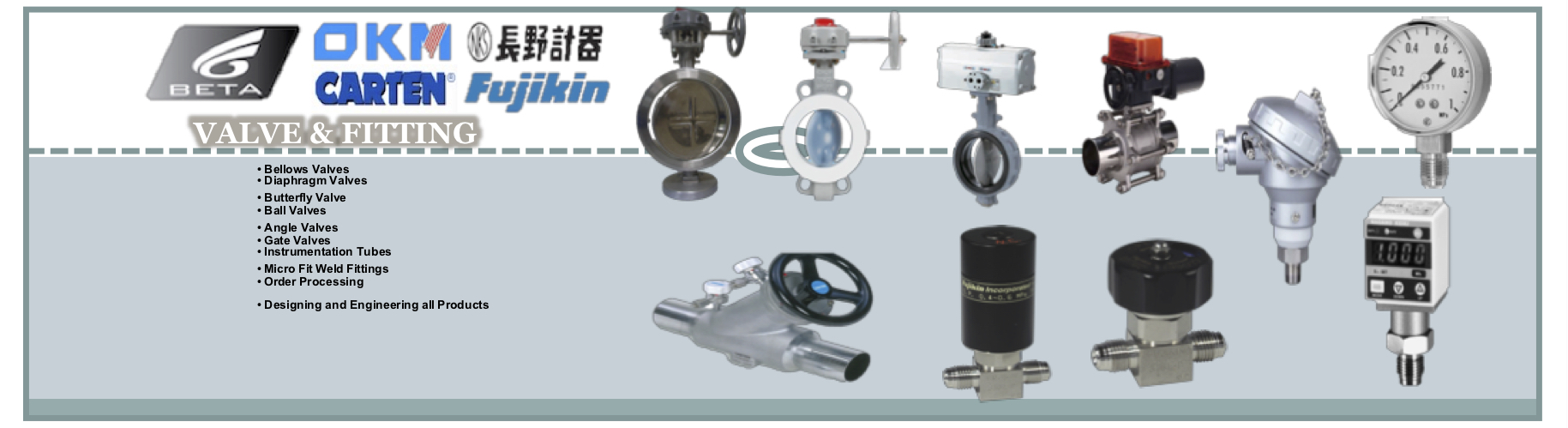 高純不銹鋼EP、BA/MP、AP等級管子/管道/管件;高純不銹鋼隔膜閥、波紋管閥、蝶閥、球閥、針閥、調(diào)壓閥等等;超純VCR、焊接、卡套接頭;以及設備應用材料:壓力傳感器、壓力表、鋼瓶電子稱、火焰探測器、氣體探測器、鋼瓶緊急切斷裝置、加熱毯、加熱線、PTFE保溫纏繞帶;化學品供應系統(tǒng)中的PFA閥門以及括口和焊接接頭,不銹鋼內(nèi)襯PFA/PTFE管道、閥門、接頭等配件。